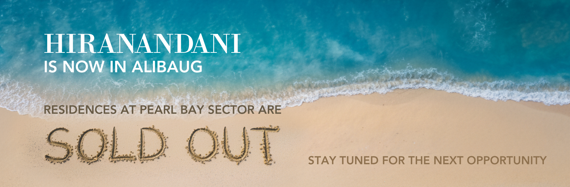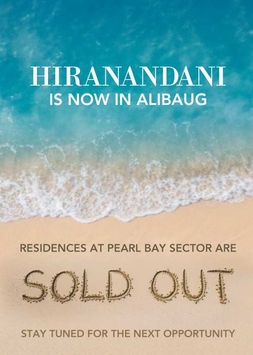 WE ARE DELIGHTED TO SHARE THAT HIRANANDANI SANDS, ALIBAUG—FEATURING THREE PREMIUM RESIDENTIAL TOWERS AT PEARL BAY SECTOR HAVE RECEIVED AN OVERWHELMING RESPONSE AND IS NOW COMPLETELY SOLD OUT. STAY TUNED FOR OUR NEXT LAUNCH AND SECURE YOUR CHANCE TO BE PART OF THIS LANDMARK COMMUNITY.